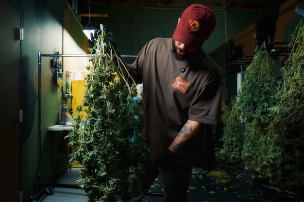 Con las hojas muertas que retrocedían hacia el cogollo, la gestión de la calidad se trasladó a la poscosecha . La prioridad era eliminar la mayor cantidad posible de hojas muertas antes de la cosecha, para evitar que se desmenuzaran en el producto y que se eliminaran los terpenos durante el curado.