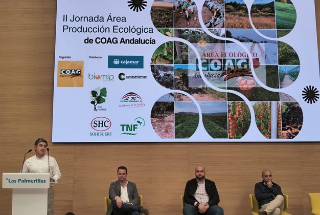 Más de 200 profesionales del sector agroalimentario andaluz participaron el pasado 19 de marzo en la Estación Experimental de Cajamar "Las Palmerillas", en El Ejido (Almería), en la II Jornada del Área de Producción Ecológica organizada por COAG Andalucía, consolidando este encuentro como "uno de los principales foros de referencia del sector en la comunidad".