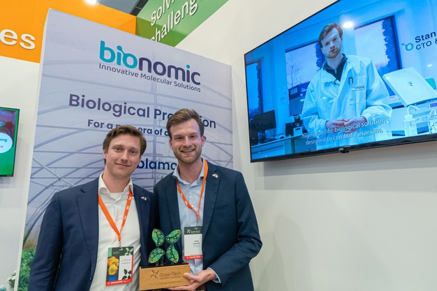 Bionomic ganó con su BioShield, una solución biológica estable (sin microorganismos vivos) que controla Fusarium y Rhizoctonia al inhibir su crecimiento. Ideal para la gestión integrada de plagas en cultivos hortícolas. El jurado declaró: "Bionomic es el ganador: un producto biológico de acción rápida, compatible tanto con la agricultura ecológica como con la convencional, que ofrece un gran potencial y que se encuentra actualmente en fase de desarrollo".