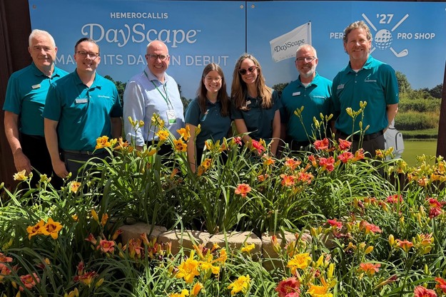© Ball Horticultural CompanyEl equipo de Darwin Perennials muestra su nueva serie Hemerocallis en California Spring Trials. El surtido Daylily DayScape se lanza con nueve colores altamente resistentes a la roya y las enfermedades. Tienen un elevado número de capullos y son autolimpiables y se abren en frío. De izquierda a derecha: Karl Batschke, Mike Annes, Alan Rouse, Sarah Greenwood, Sara Mellard, Chris Fifo y Darren Barshaw.