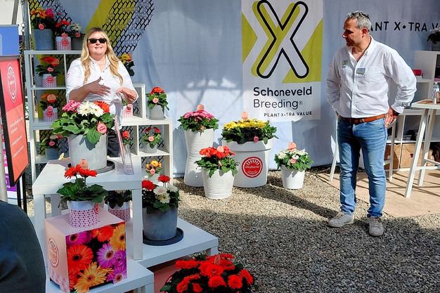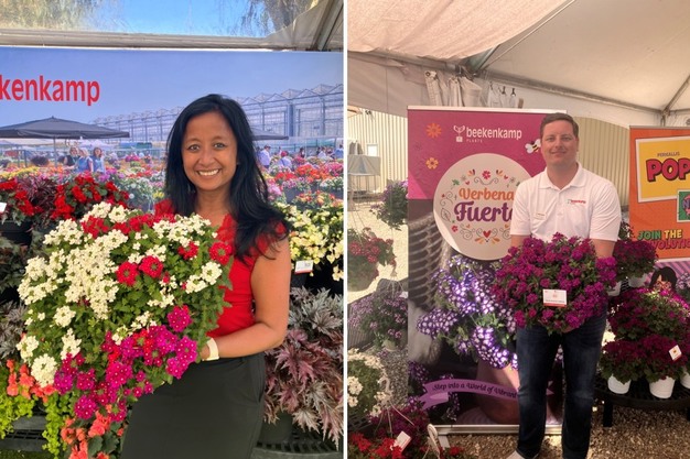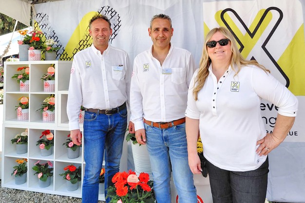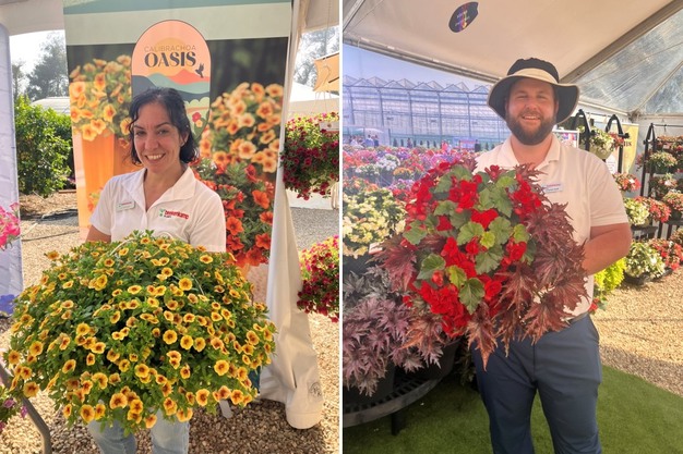 El equipo de ventas latinoamericano, formado por Camilo Cano (izquierda) y Camile Valle (derecha), cree que el nuevo osteospermum es la mejor opción para el color en las estaciones frías. Akila Sunshine Yellow es el primer osteospermum amarillo procedente de semilla, con un hábito compacto y una producción sin contratiempos. Florece en un plazo de 7 a 10 días sin vernalización.
