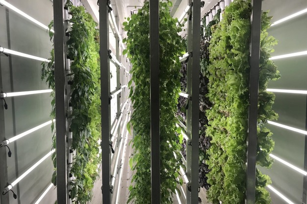 Todo empezó con un concepto de vivienda asequible que nunca llegó a despegar. Jason Brown, miembro fundador del equipo de FarmBox Foods, trabajaba en un proyecto para construir viviendas dentro de contenedores marítimos. El plan incluía jardines exteriores en forma de tubos integrados verticalmente y aptos para alimentos (la prefiguración es un recurso narrativo, etc.). Como es habitual en estas situaciones, los plazos de construcción y los problemas de permisos se interpusieron en el camino. "Cuando pusimos la primera piedra, nos dimos cuenta de que tardaríamos años en empezar", dice. "Así que construimos la sala de cultivo dentro del contenedor".