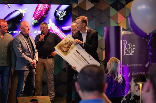 El pasado viernes (17 de abril), la asociación de productores Purple Pride celebró su 30 aniversario con todos los productores, el personal de cultivo, los socios de la cadena y los proveedores. El lema de este aniversario ha sido "30 años de berenjena". Pleun van Duijn, uno de los fundadores, compartió una reflexión sobre el pasado y las perspectivas de futuro.