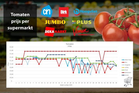 Tomates en rama de oferta en el retail holandés y el precio medio del brócoli sigue bajando